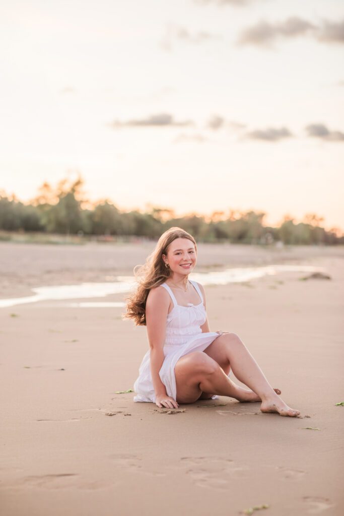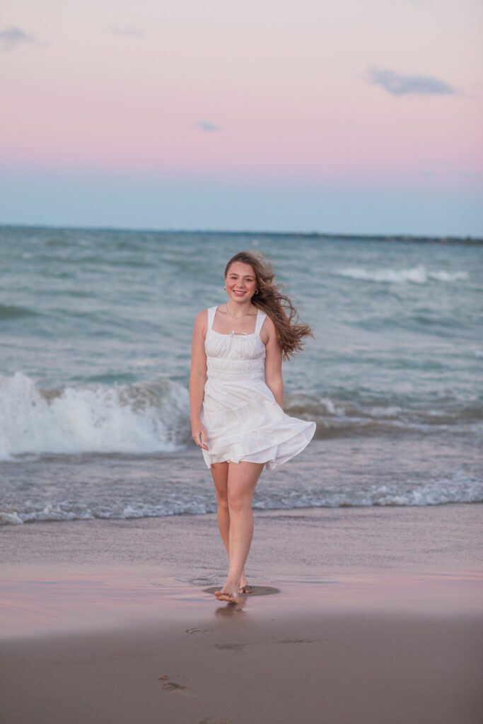 To finish off Sadie’s amazing session we went to Purt Huron and took so beach photos as the sun was coming down. We were racing against time to capture the sunset and the weather on the beach. We were being pelted in the face from sand and the wind blowing as the tide came in. Albeit cold, it was an amazing way to end the session.