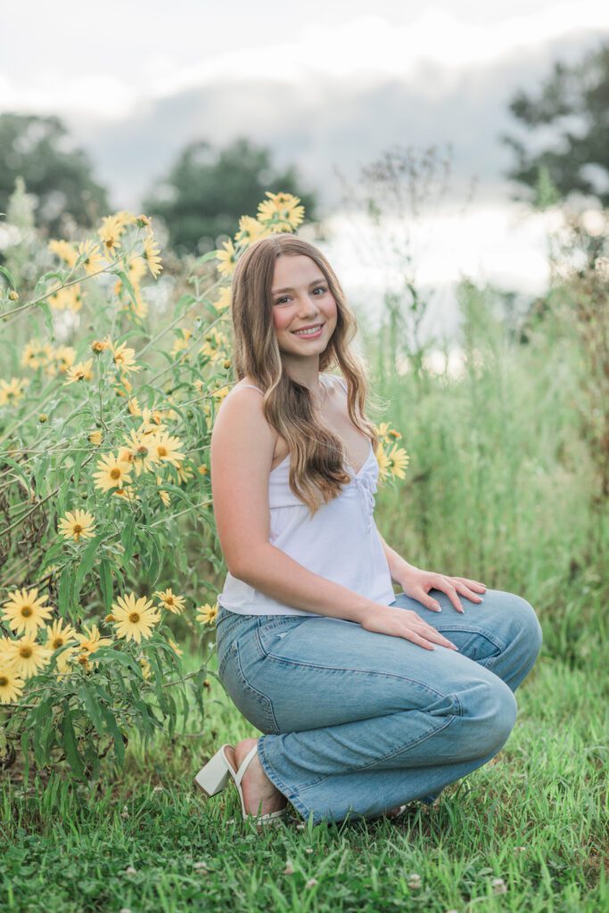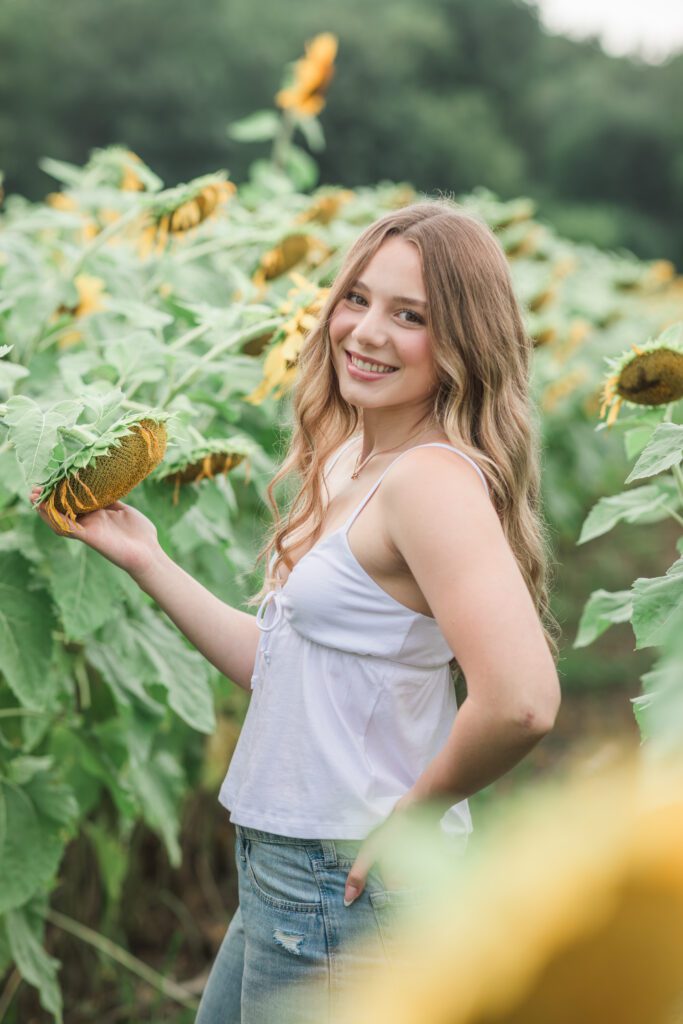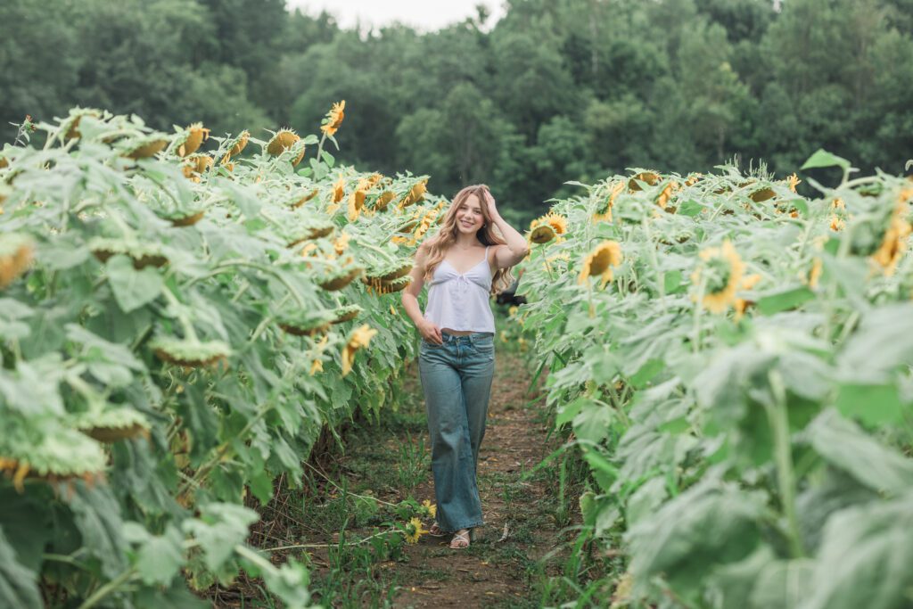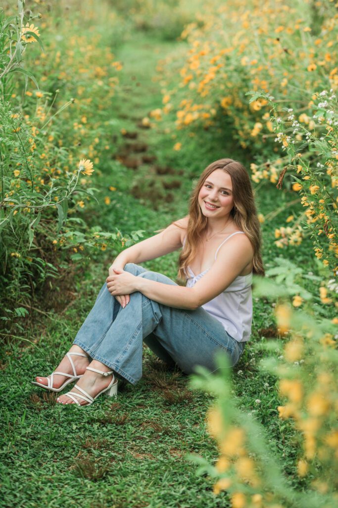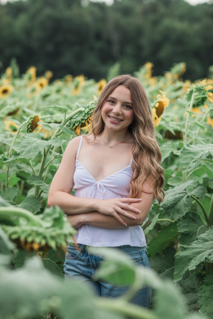 We had an ideal scenario for the start of Sadie’s senior session: overcast skies and cooler temps (!!!) Sadie wanted to capture the gorgeous flower farm at Ankley Family Farm. As our session continued, the grey skies started to become a little darker and the very low chance of rain that was in the forecast started to quickly move in. A half hour into the session we rescheduled her session for a week later and it was the best decision. Sadie’s bright, beautiful outfits popped against the beautiful flowers that were full in bloom! Sadie is so sweet, bubbly and kind – we had the best evening together capturing her gorgeous shoot!