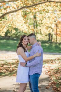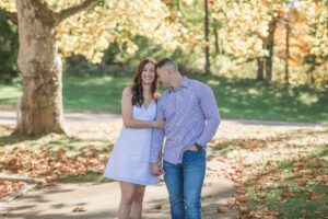Emily and Blake had a beautiful and warm Engagement Session in Lansing this past fall. They are one of my 2026 Lillie Mae Wedding couples and are having a wedding at the beautiful Res Les Farms in East Leroy. It was so much fun getting to know these two during their engagement session and hear about their proposal story. We photographed their engagement photos at two parks in Lansing that are less than 20 minutes apart from each other.