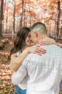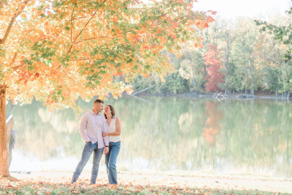 We first started their session at Frances Park and took some beautiful garden photos with some pops of fall color starting to come in. After getting some fun candid images of them there we then proceeded to Hawk Island Park and took full advantage of the fall color that was provided for some golden hour evening photos. It was such a joy to have these two in front of my camera and I can’t wait for their wedding day!