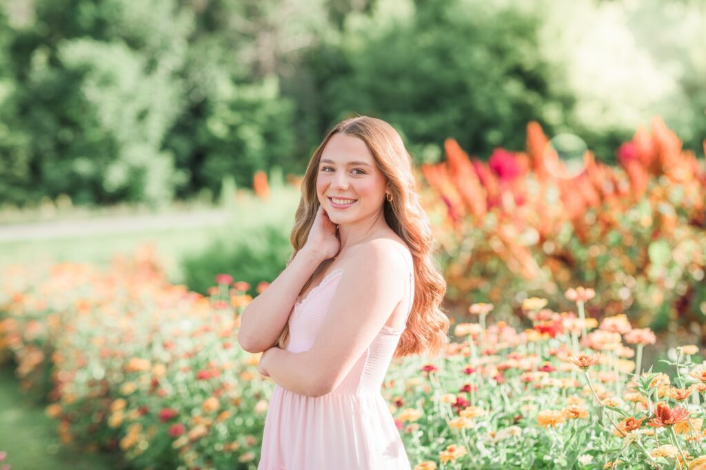 We had an ideal scenario for the start of Sadie’s senior session: overcast skies and cooler temps (!!!) Sadie wanted to capture the gorgeous flower farm at Ankley Family Farm. As our session continued, the grey skies started to become a little darker and the very low chance of rain that was in the forecast started to quickly move in. A half hour into the session we rescheduled her session for a week later and it was the best decision. Sadie’s bright, beautiful outfits popped against the beautiful flowers that were full in bloom! Sadie is so sweet, bubbly and kind – we had the best evening together capturing her gorgeous shoot!